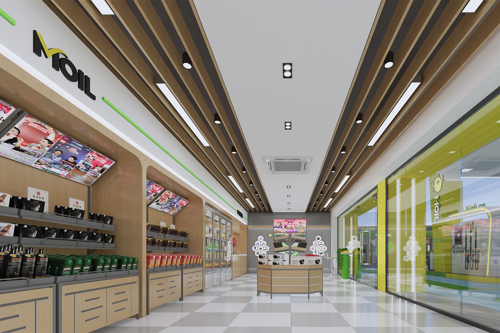 Project Content: Cornice + soft film ceiling + convenience store + column wrapping + Car Wash Equipment